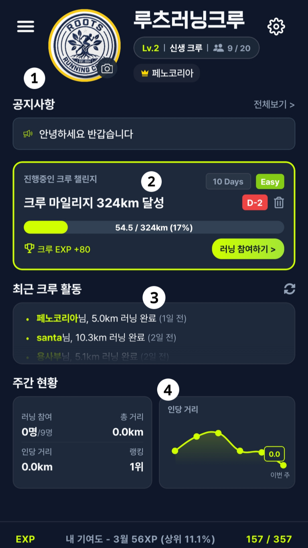 2. 크루 경험치 및 레벨