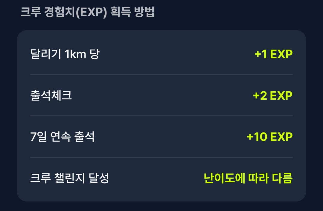 크루 경험치 획득 방법